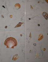 Éppen ezért igyekszem néhány tengeri aprósággal felékesíteni a fürdőt, és az ehhez nélkülözhetetlen kagylók és csigák igazán remek felhasználási módját találtam meg ehhez. Persze lehet egy tálba, kosárkába, homokkal "bélelt" tálcára is helyezni a kagylókat, de ha a falra, azaz a csempére ragasztjátok őket, sokkal különlegesebb hatást érhettek el!